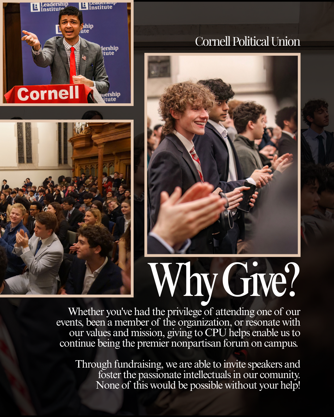 We are a growing community of Cornellians with diverse political perspectives, united by passion and a commitment to thoughtful dialogue on today’s most pressing political and philosophical questions.